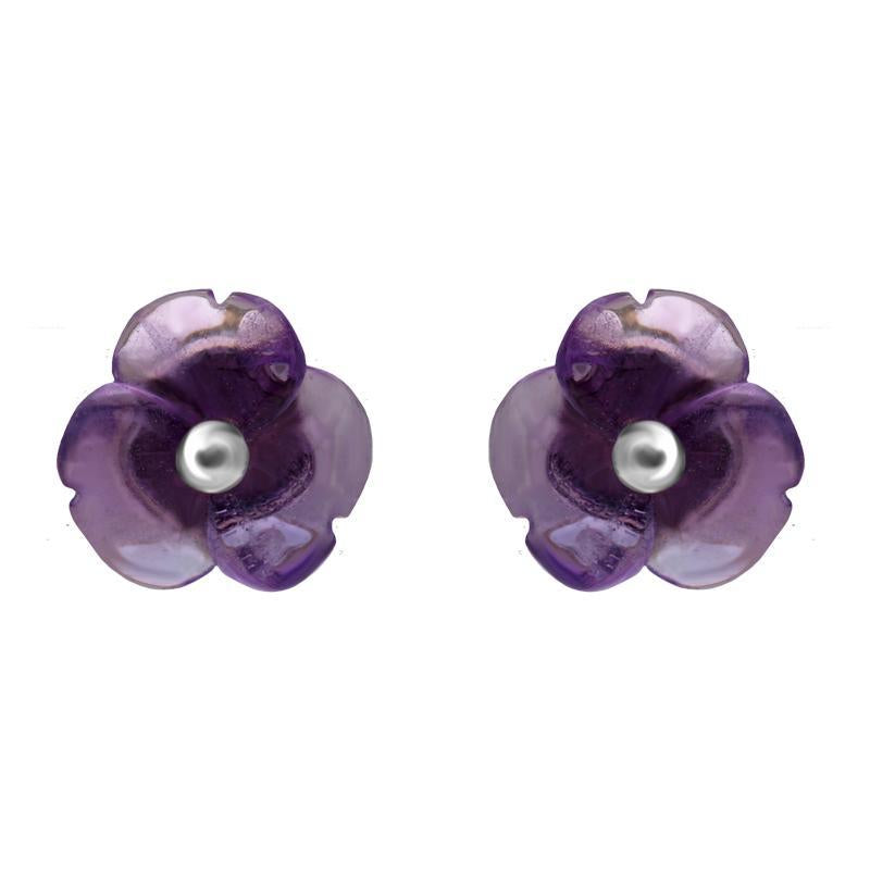 Sterling Silver Amethyst Tuberose Clover Stud Earrings, E2159.