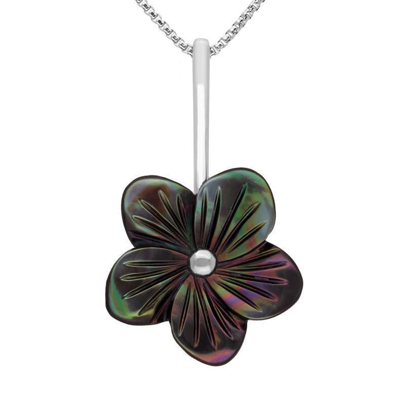 Whitby Jet Store Sterling Silver Dark Mother of Pearl Pansy Tuberose Necklace, P2853.