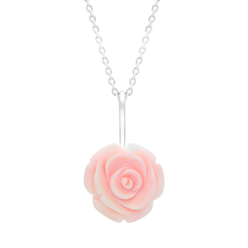 Sterling Silver Pink Conch Tuberose Rose Necklace, P2849.