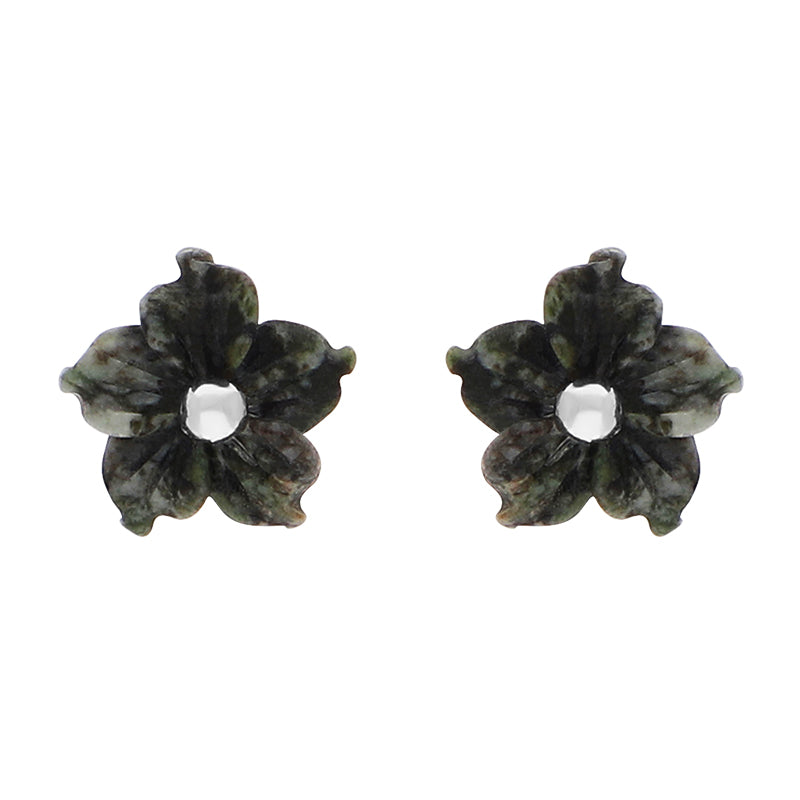 Sterling Silver Preseli Blue Stone Tuberose Flower 8mm Stud Earrings