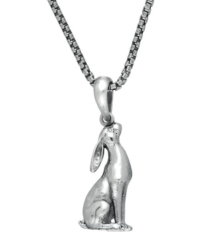 This pendant features one of the British Isles most familiar native animals, the hare, which has been a popular symbol since pagan times, steeped in mystery and magic. A perfect gift for all lovers of the great outdoors and nature.The pendant is supplied complete with a 24 inch oxidised sterling silver chain.
