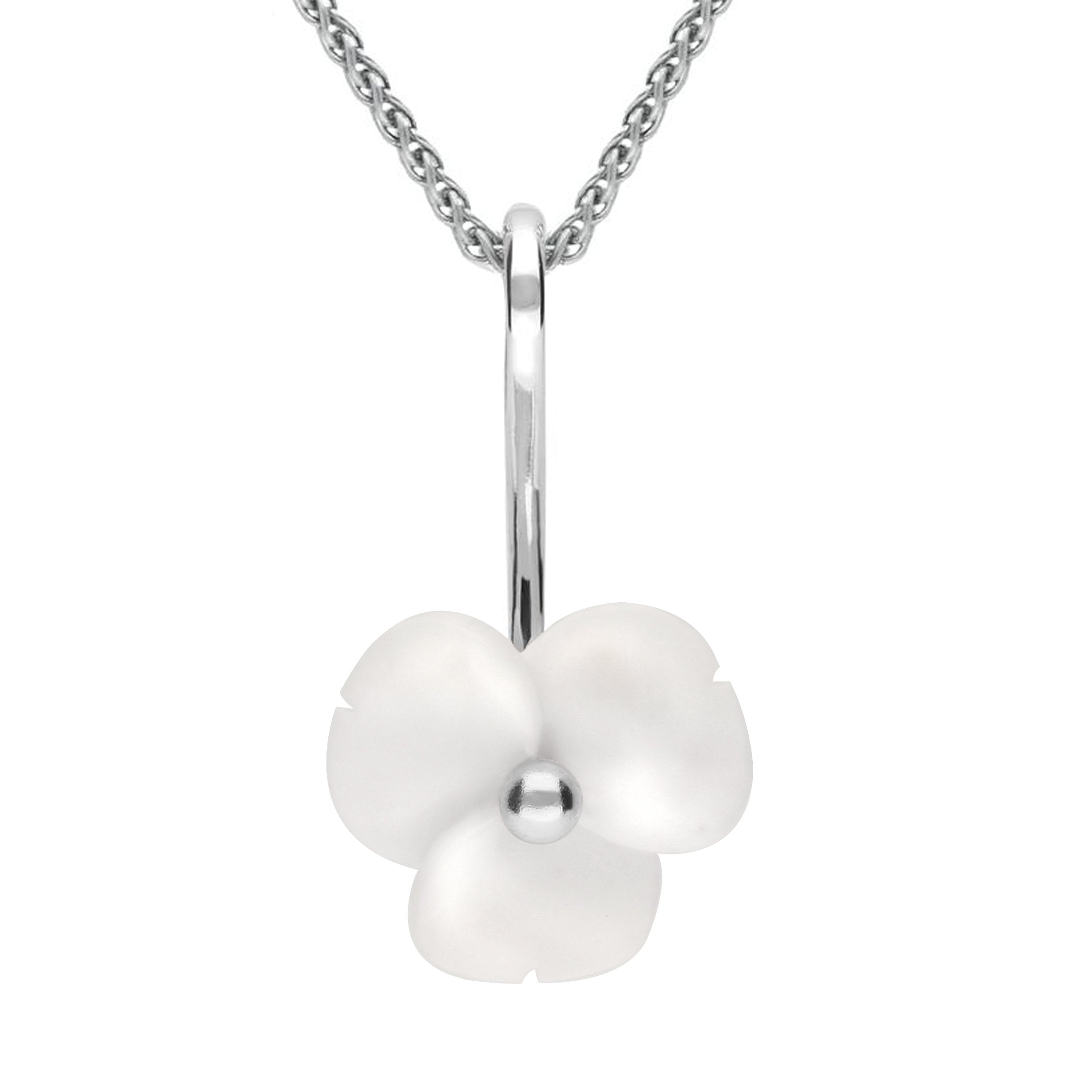 This enchanting necklace is part of our Tuberose handmade jewellery collection and feature a delicate hand crafted piece of White Agate.The beautiful pearly and porcelain White Agate has been hand carved into a clover flower design and is completed with an 18 inch sterling silver chain.