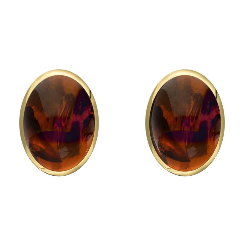 9ct Yellow Gold Amber 8 x 10mm Classic Large Oval Stud Earrings