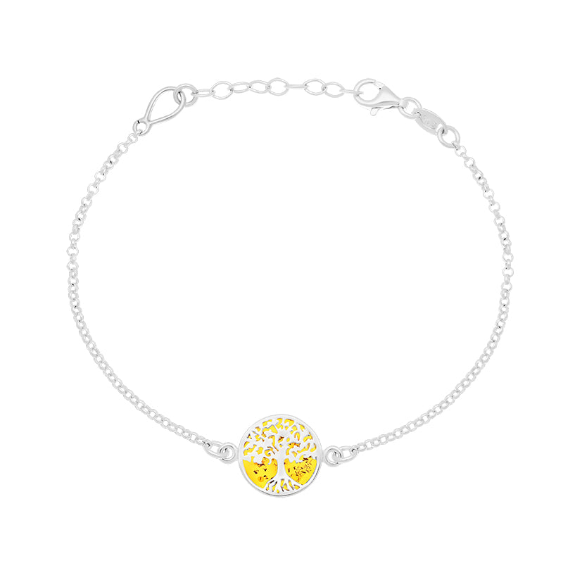 Sterling Silver Amber Round Tree of Life Chain Bracelet