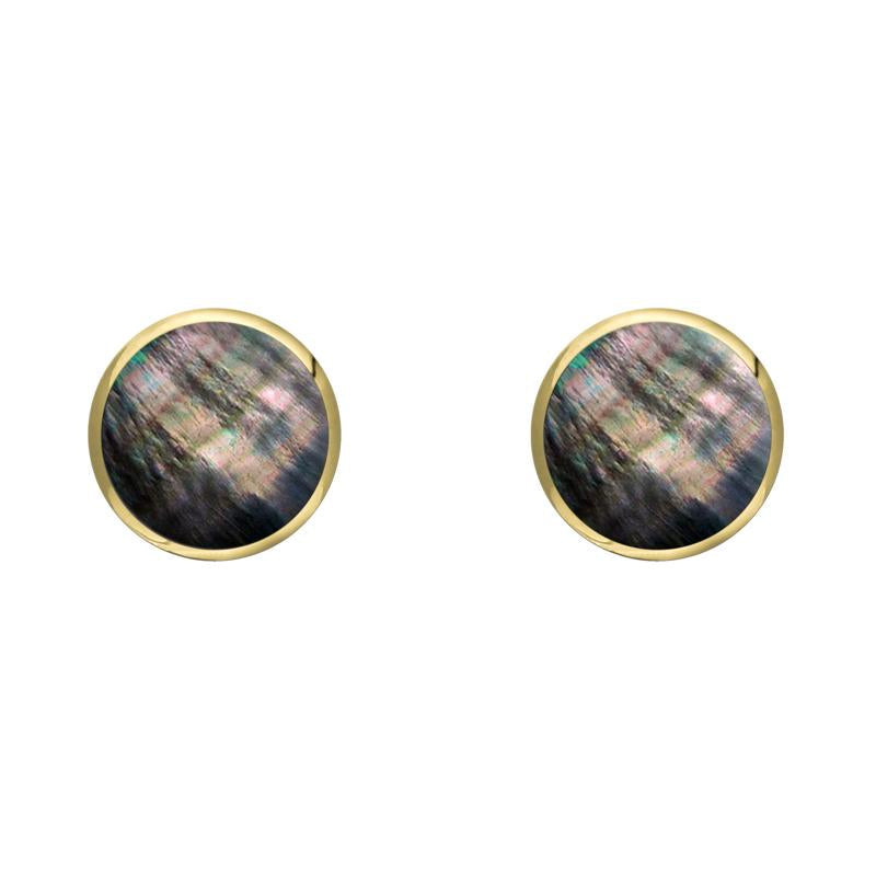 Whitby Jet Store 9ct Yellow Gold Dark Mother of Pearl 5mm Classic Small Round Stud Earrings, E002.