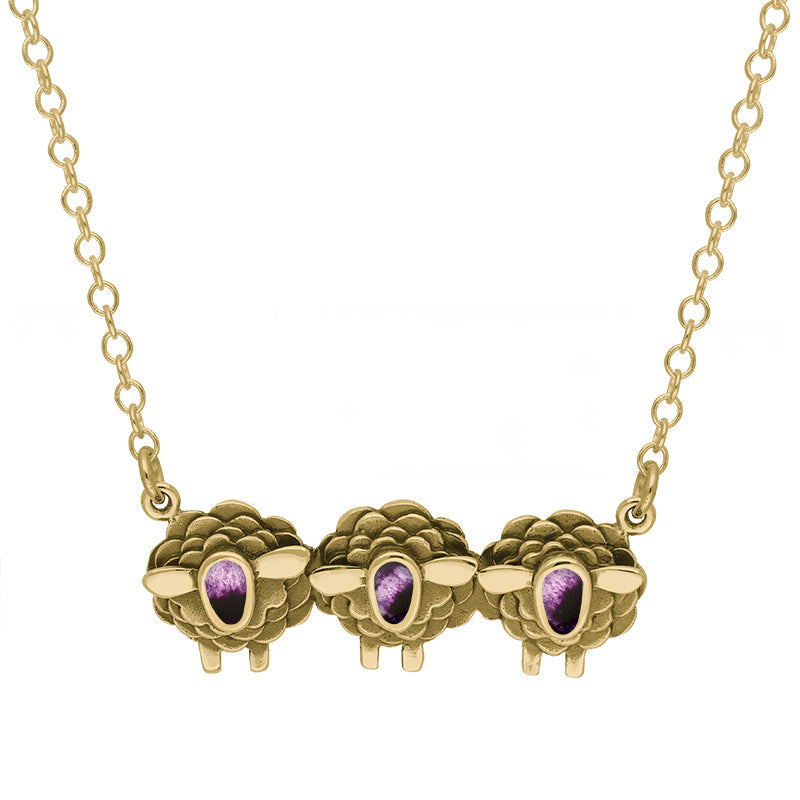 18ct Yellow Gold Blue John Three Sheep Necklace