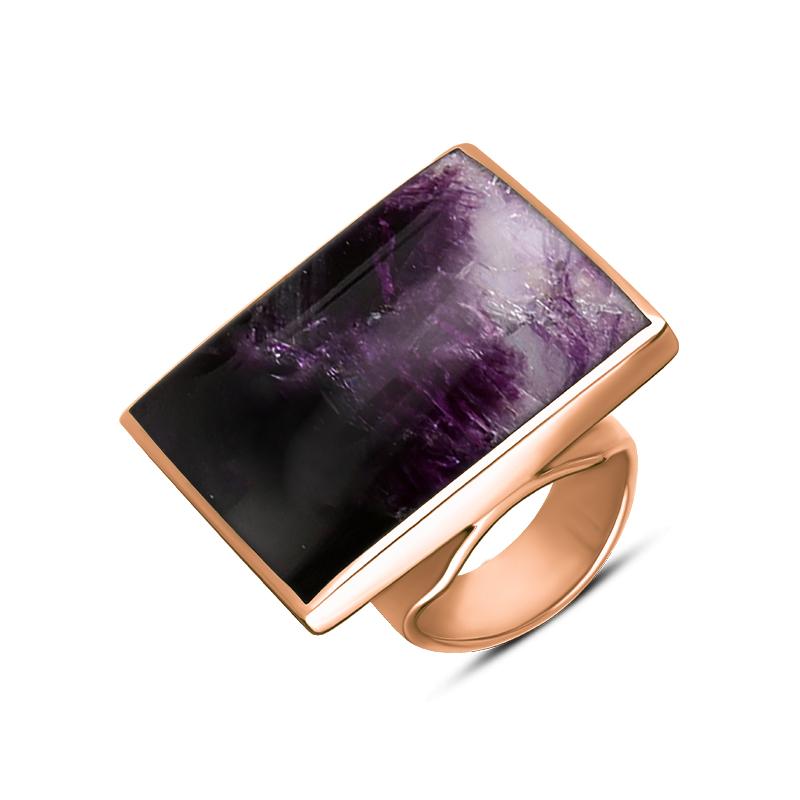 9ct Rose Gold Blue John Large Square Ring, R605.