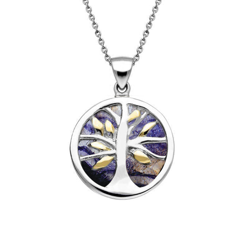 Yellow Gold Plated Sterling Silver Blue John Small Round Tree of Life Necklace, P3547