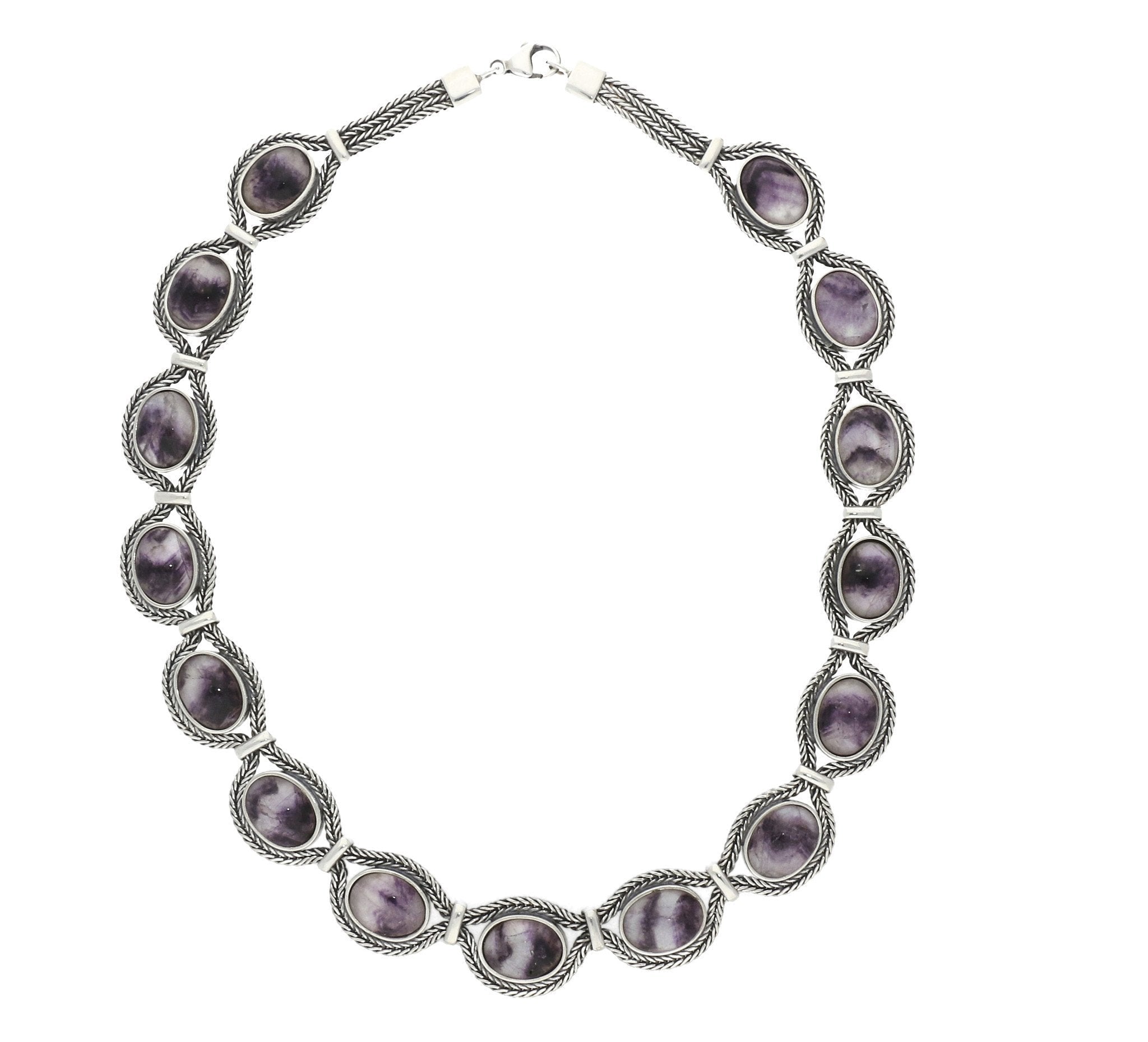 Sterling Silver Blue John Foxtail Oval Fifteen Stone Necklace D
