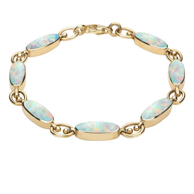 9ct Yellow Gold Opal Long Oval Bracelet, B187.