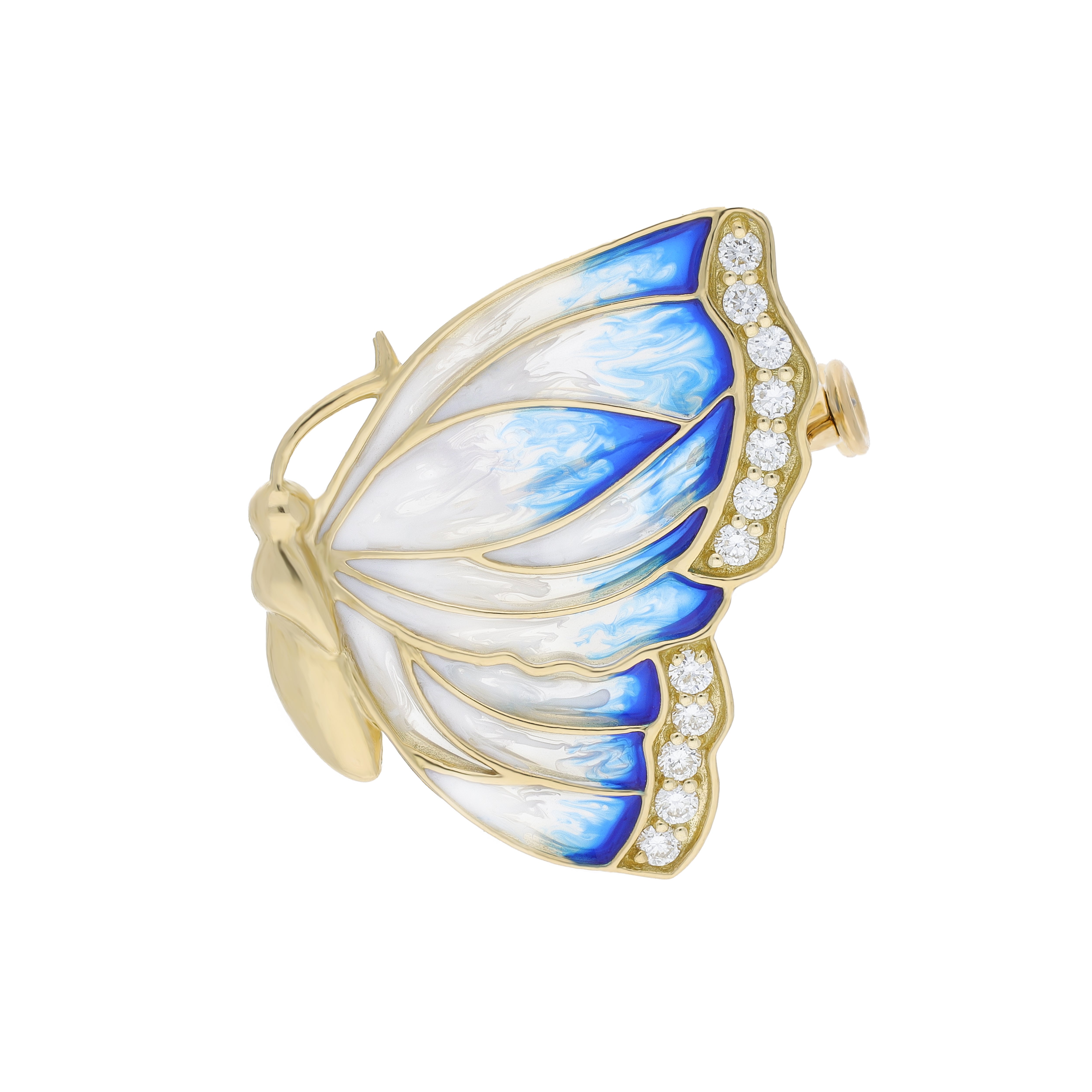 18ct Yellow Gold Blue & Grey Enamel with Diamond Butterfly Wing Brooch