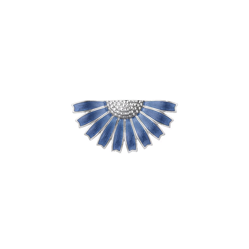 Georg Jensen Daisy Sterling Silver Blue Enamel Half Flower Brooch