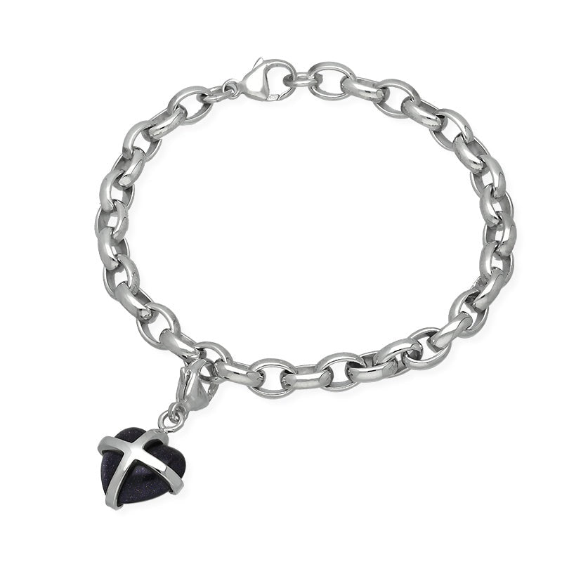 18ct White Gold Blue Goldstone Small Cross Heart Charm Bracelet
