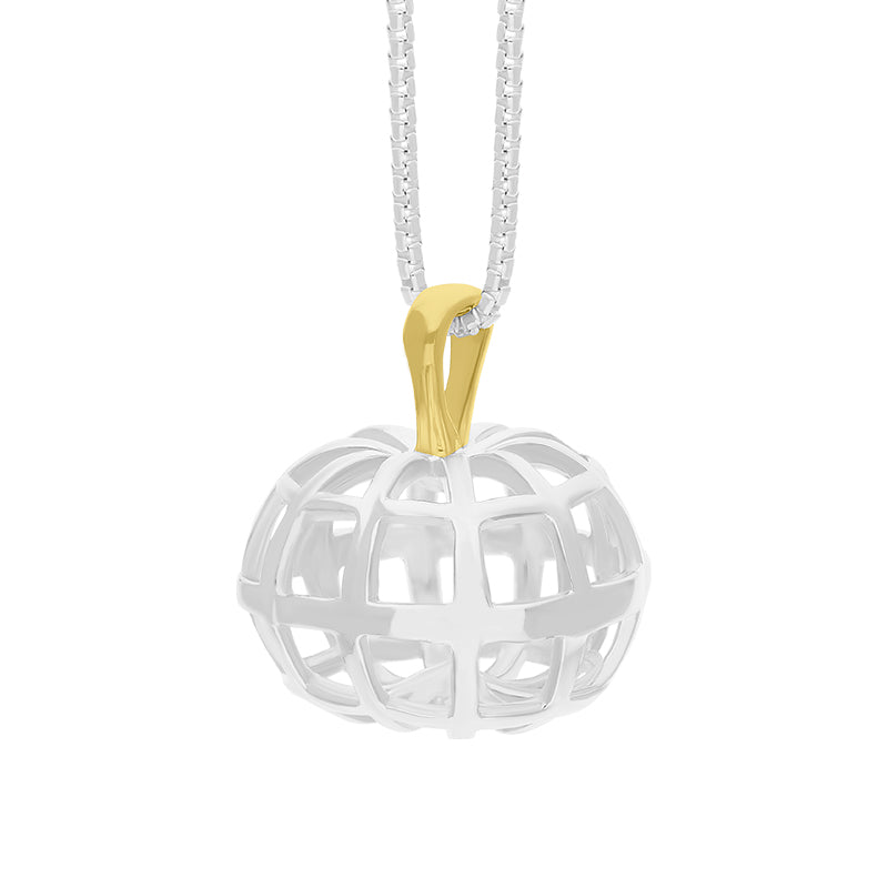 This striking sterling silver pendant features a miniature pumpkin with an 18ct yellow gold plated bail. The pendant is presented on an 18 inch long sterling silver chain. A timeless design that will make the perfect addition to any jewellery or garden lovers collection.