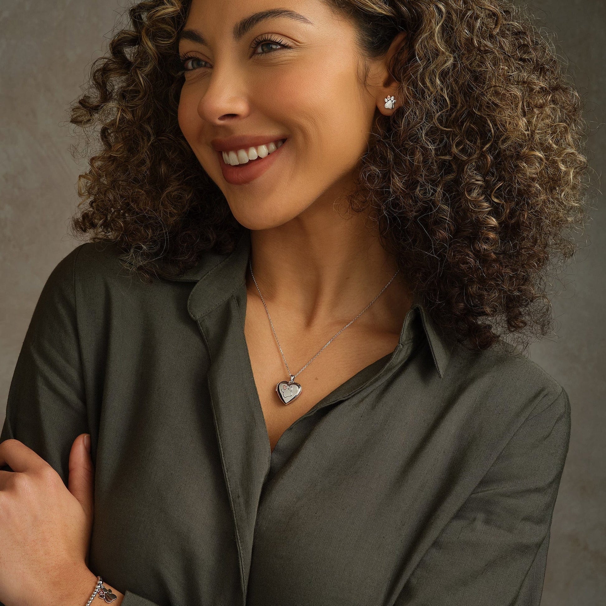 Inspired by the love that we share with our four-legged friends, this playful Paw Prints on My Heart locket celebrates unconditional loyalty and devotion. The sterling silver locket features a paw motif with a 9ct rose gold toe detail and is finished with a flash of white topaz. Keep a reminder of your canine companion close to your heart, even when you’re apart.
