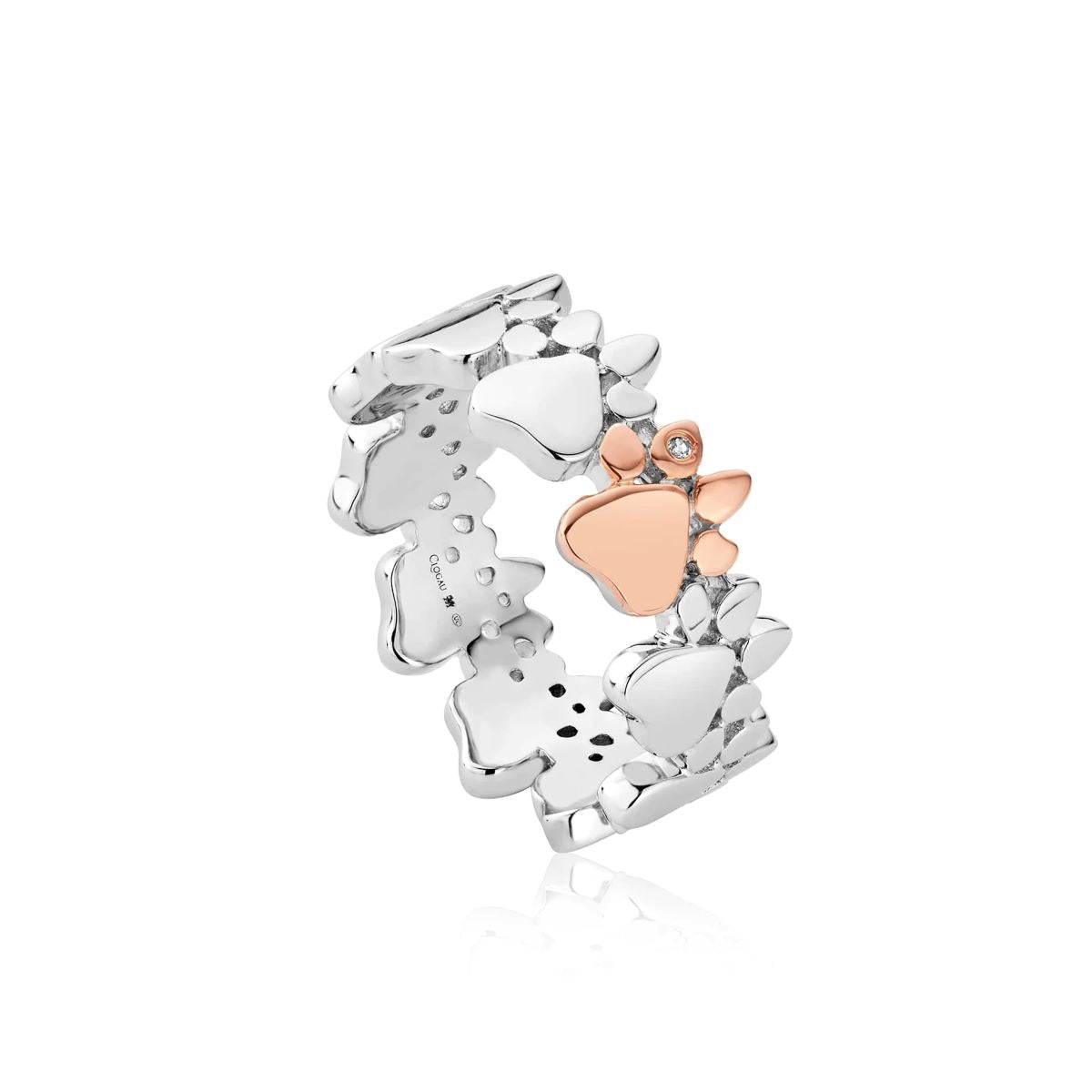 • Clogau Paw Prints On My Heart Sterling Silver White Topaz Band Ring - 3SPWP0648 (CLG-1972/P)