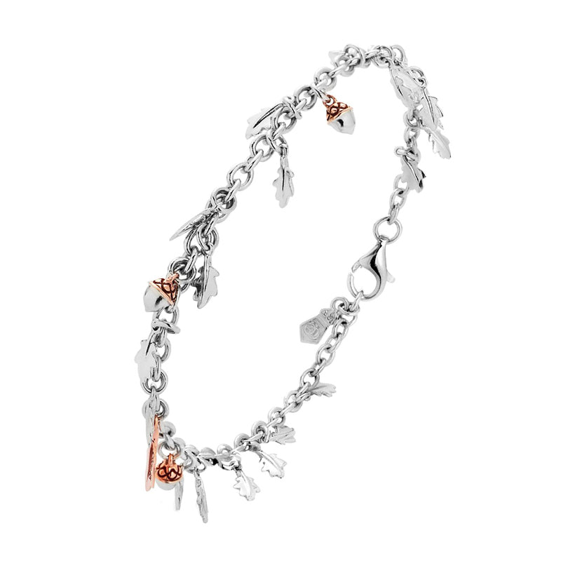 This breathtaking Clogau Royal Clogau Oak Silver Bracelet boasts a simple silver chain design with gorgeous rose gold and silver acorn and leaf decoration. This Clogau bracelet is fastened by a classic lobster clasp. All of our Clogau jewellery is delivered in elegant Clogau packaging.