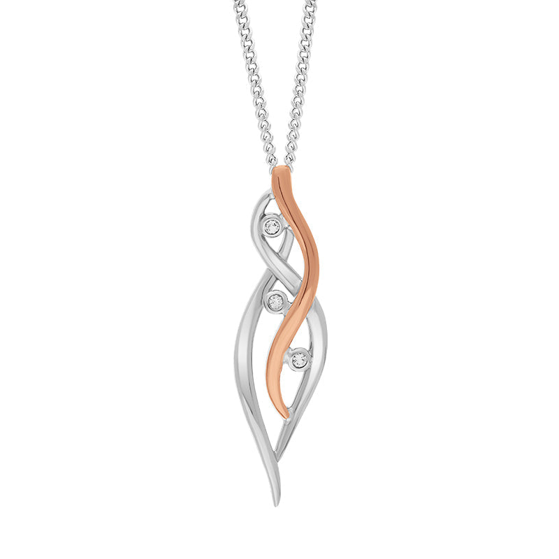 Sterling Silver and 9ct Rose Gold with white Topaz. Pendant Chain length: 22" total chain length with jump rings at 20" and 18"