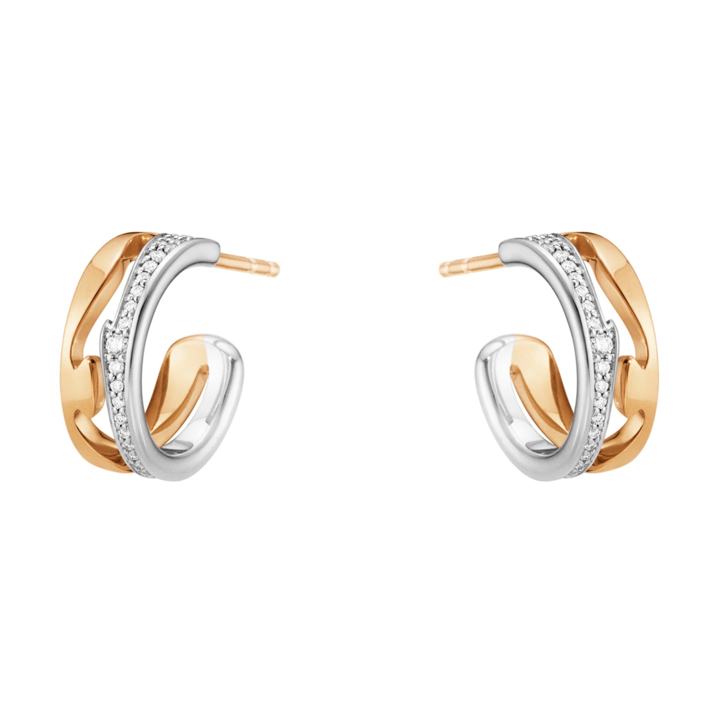 Georg Jensen Fusion 18ct Rose and White Gold Diamond Pave Hoop Earrings