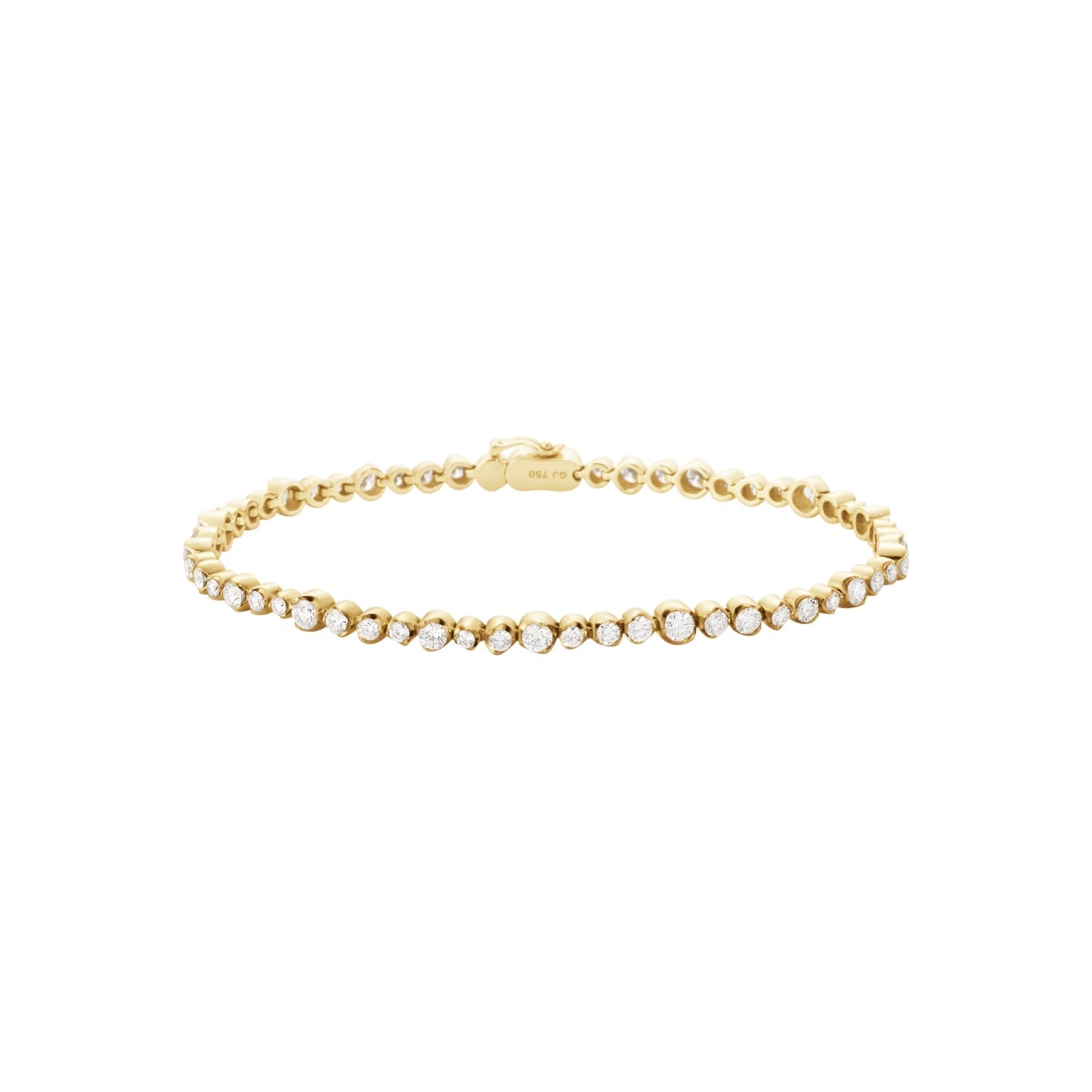 This solid 18ct gold tennis bracelet is a true piece of craft. Embodying the house's relentless commitment to innovation in design, the piece features a signature diamond setting that enhances and maximises its brilliance. Each differently-sized diamond is carefully hand-set in a natural and non-linear way, referencing one of Georg Jensen's greatest sources of inspiration: nature. Crafted to be treasured and passed down through generations, this bracelet will never go unnoticed.
