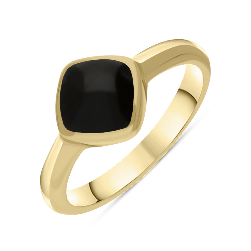 9ct Yellow Gold Whitby Jet Cushion Ring