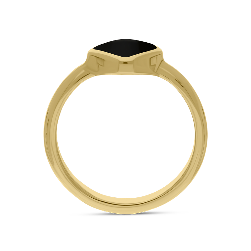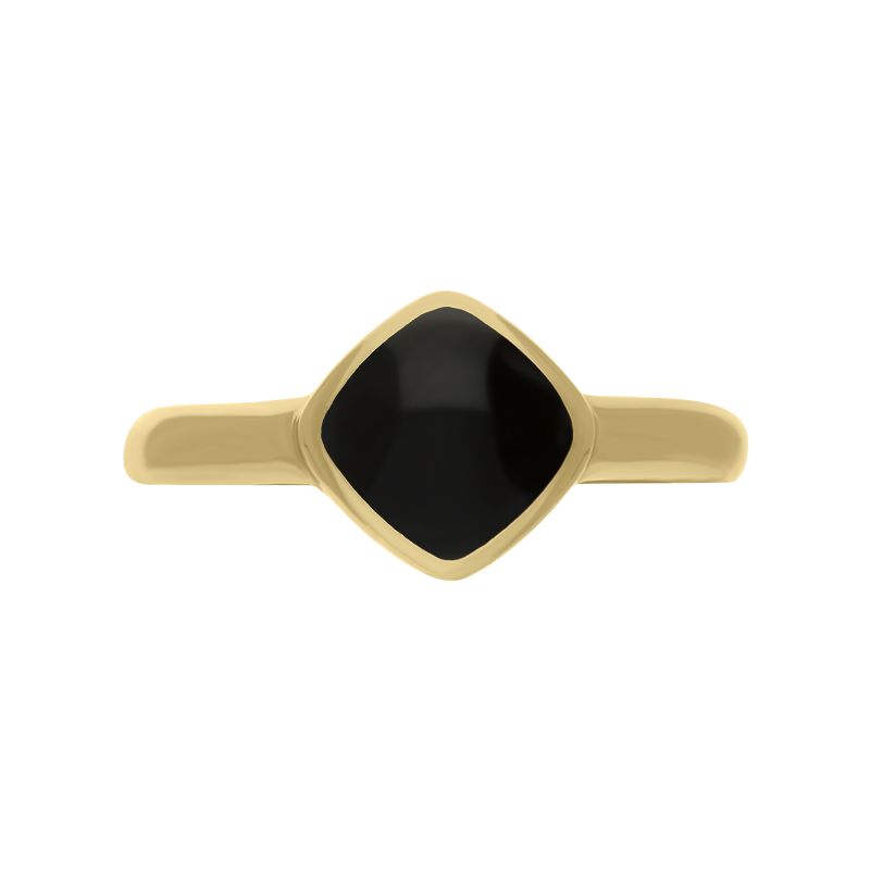9ct Yellow Gold Whitby Jet Cushion Ring, R406.