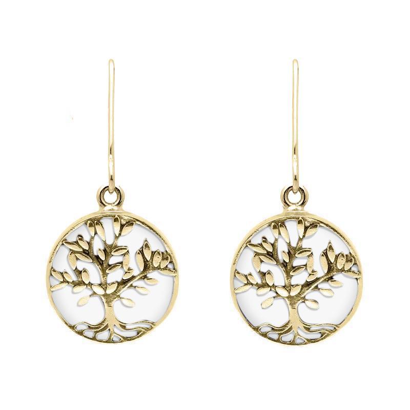 This set of elegant 9ct Yellow Gold and Bauxite Tree of Life design drop earrings are perfect for any occasion. In ancient times the Tree of Life was considered to be a symbol of immortality. The leaves on the tree were thought to have magical properties and elements to heal the soul.