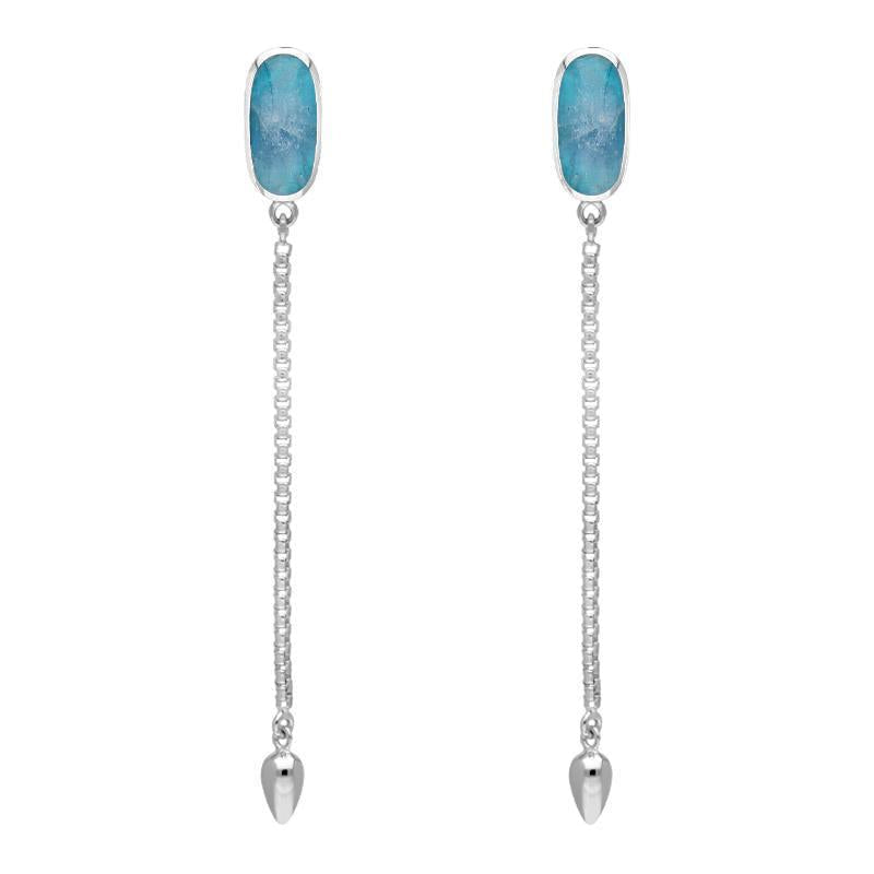 Sterling Silver Aquamarine Lineaire Long Drop Stud Earrings. E2240.