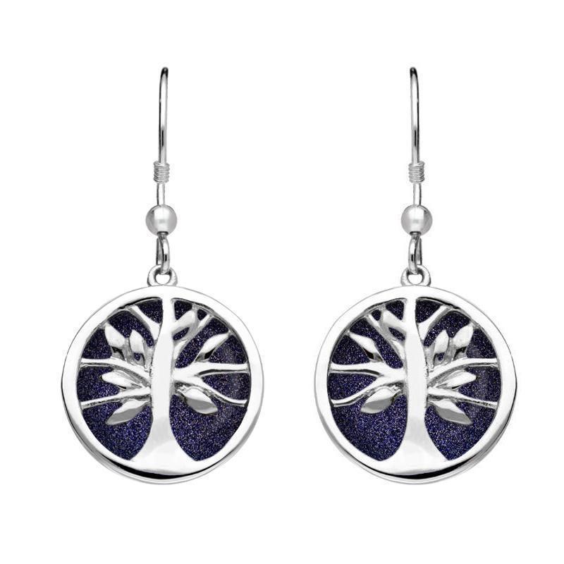 • Sterling Silver Blue Goldstone Round Tree of Life Drop Earrings - E2485 (TOL-191)