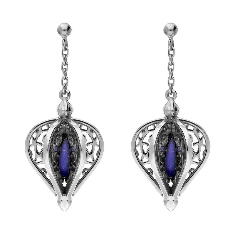 Sterling Silver Lapis Lazuli Flore Filigree Drop Earrings, E1781