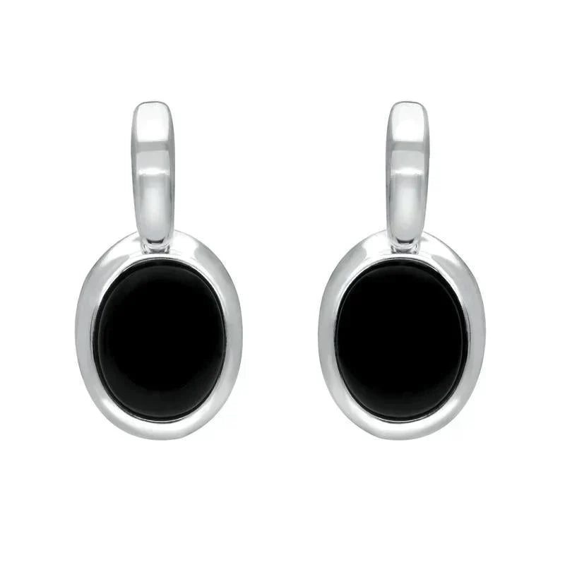 Sterling Silver Whitby Jet Oval Drop Earrings