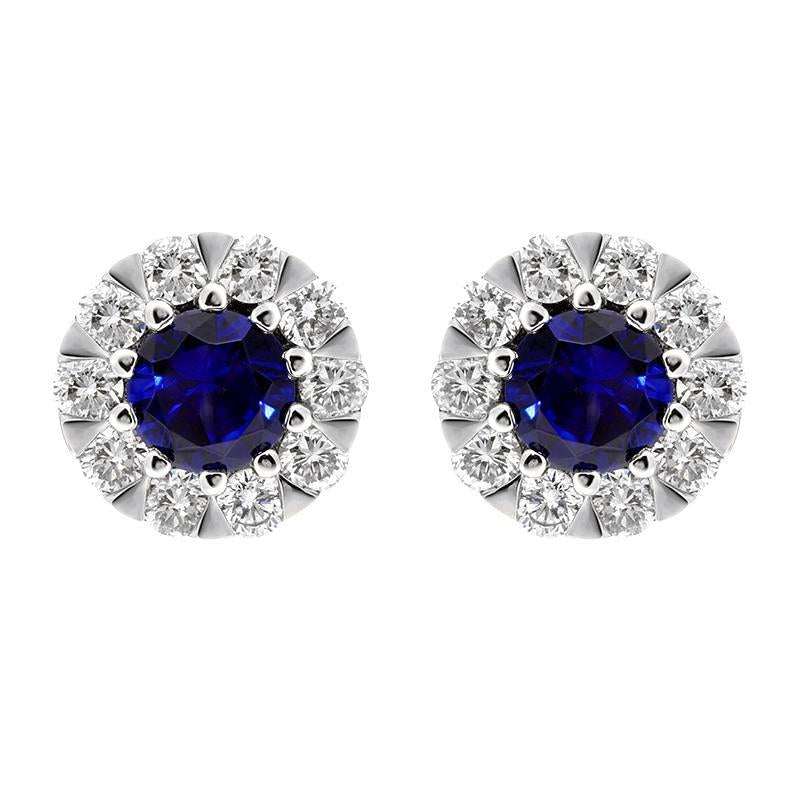 Simple and elegant, these cluster stud earrings feature sparkling sapphires totalling 0.40cts, with a halo of brilliant cut diamonds totalling 0.26cts. Beautifully crafted in 18ct white gold with secure post and butterfly fastenings.