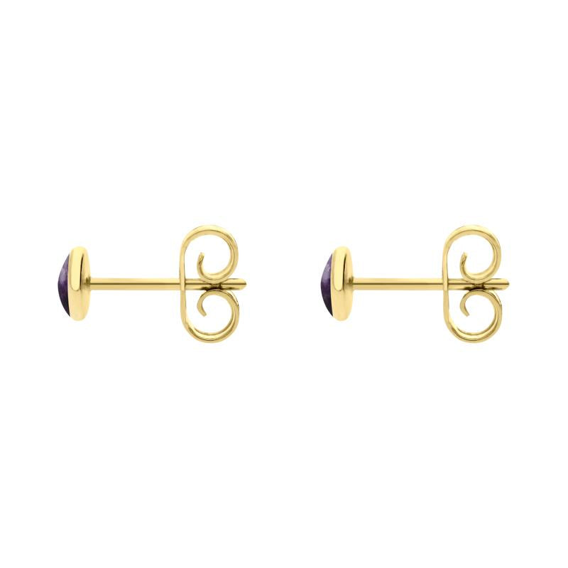9ct Yellow Gold Blue John 4mm Class Small Round Stud Earrings, E001.