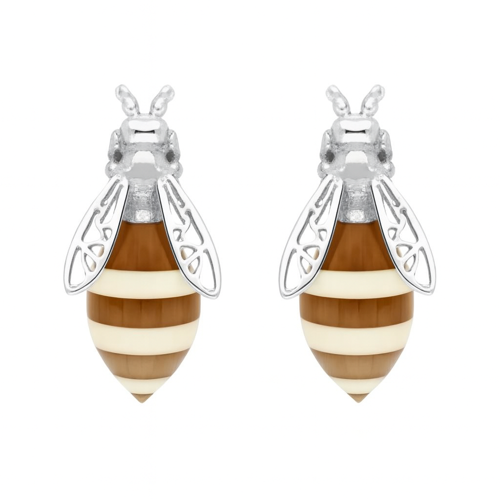 Sterling Silver Amber Bee Stud Earrings, E2424.