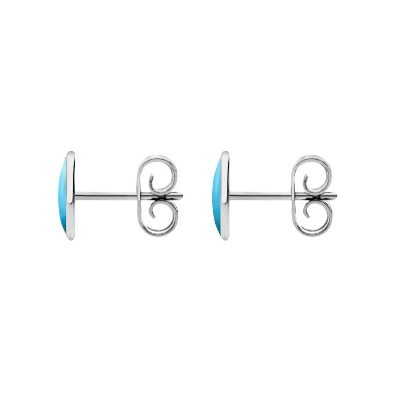 A staple piece for the jewellery box, these oval Turquoise and sterling silver stud earrings are a perfect gift for someone who is just starting their jewellery collection. Beautifully discreet, these studs will match with a plethora of styles and occasions. Set with a secure post and butterfly fitting.