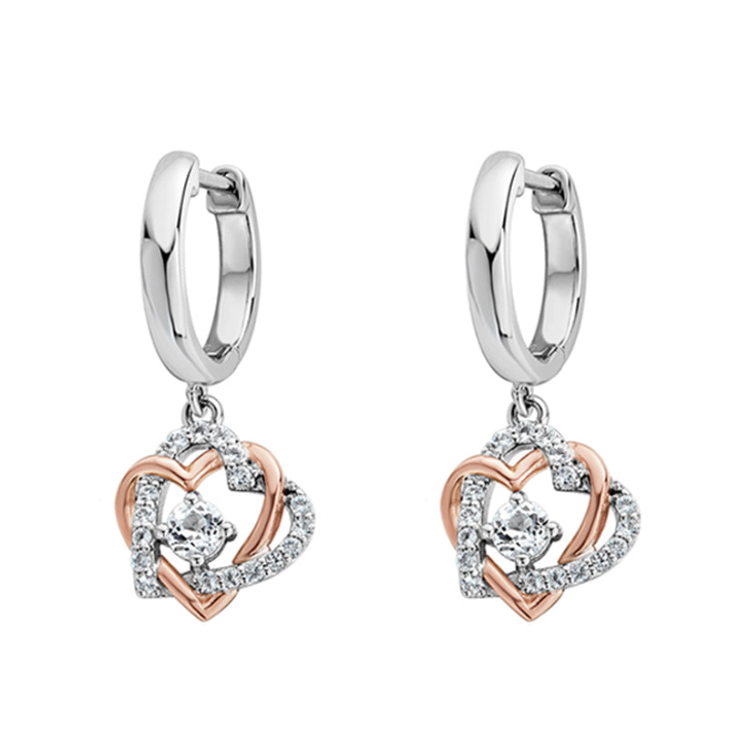 • Clogau Always in my Heart Sterling Silver White Topaz Drop Earrings - 3SAMH0094 (CLG-1547)
