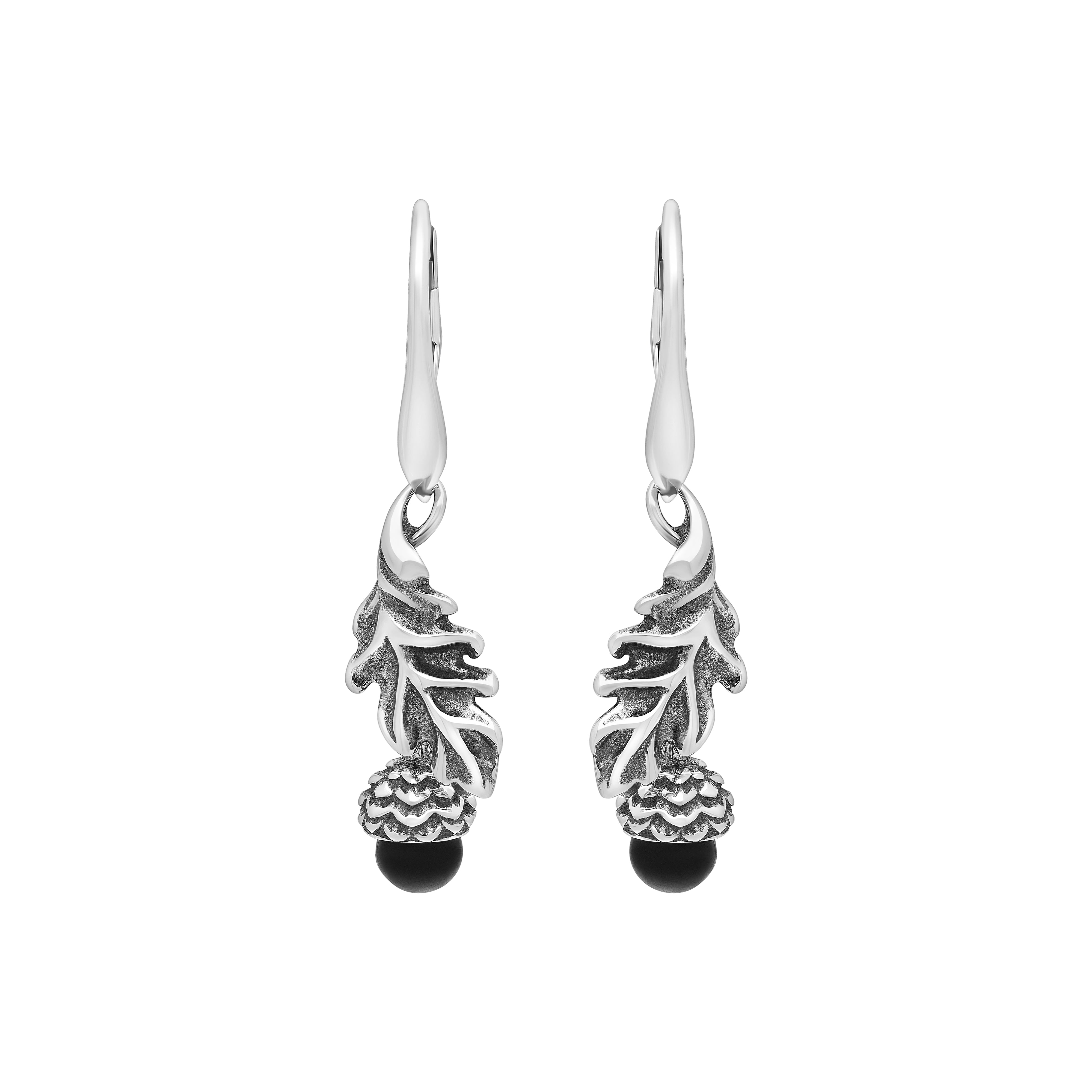 Sterling Silver Whitby Jet Acorn Leaf Hook Earrings, E2616