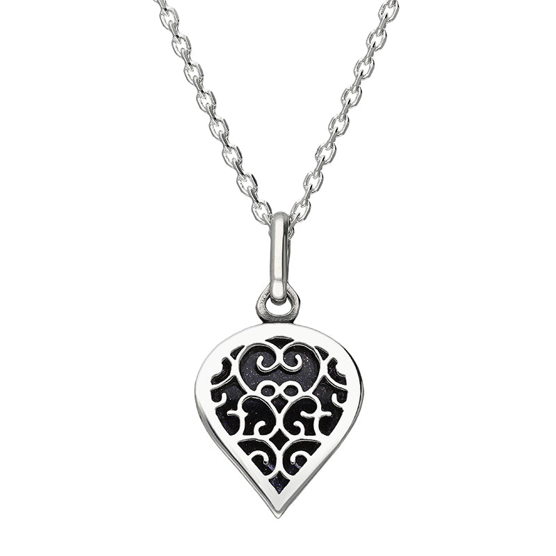 • 18ct White Gold Blue Goldstone Flore Filigree Small Heart Necklace - P3629 (FLR-033)