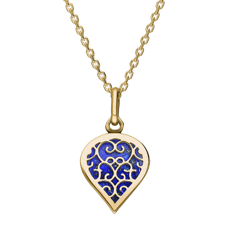 • 18ct Yellow Gold Lapis Lazuli Flore Filigree Small Heart Necklace - P3629 (FLR-041)