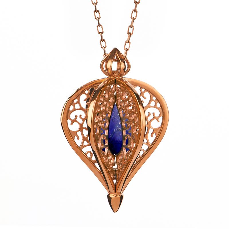 9ct Rose Gold Lapis Lazuli Flore Filigree Small Necklace