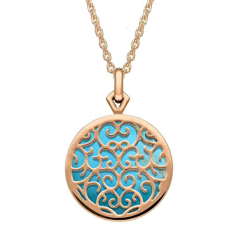 9ct Rose Gold Turquoise Flore Filigree Necklace P2339C