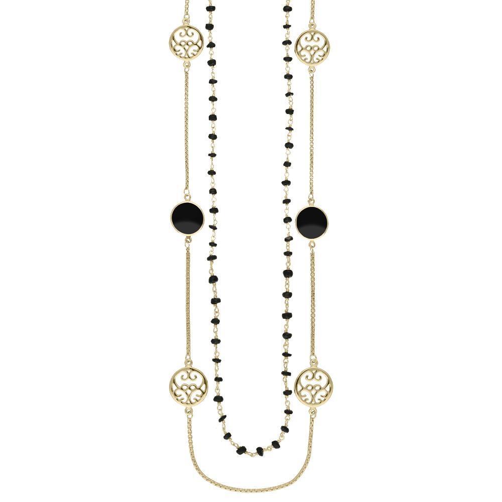 Yellow Gold Whitby Jet Flore Filigree Double Row Necklace