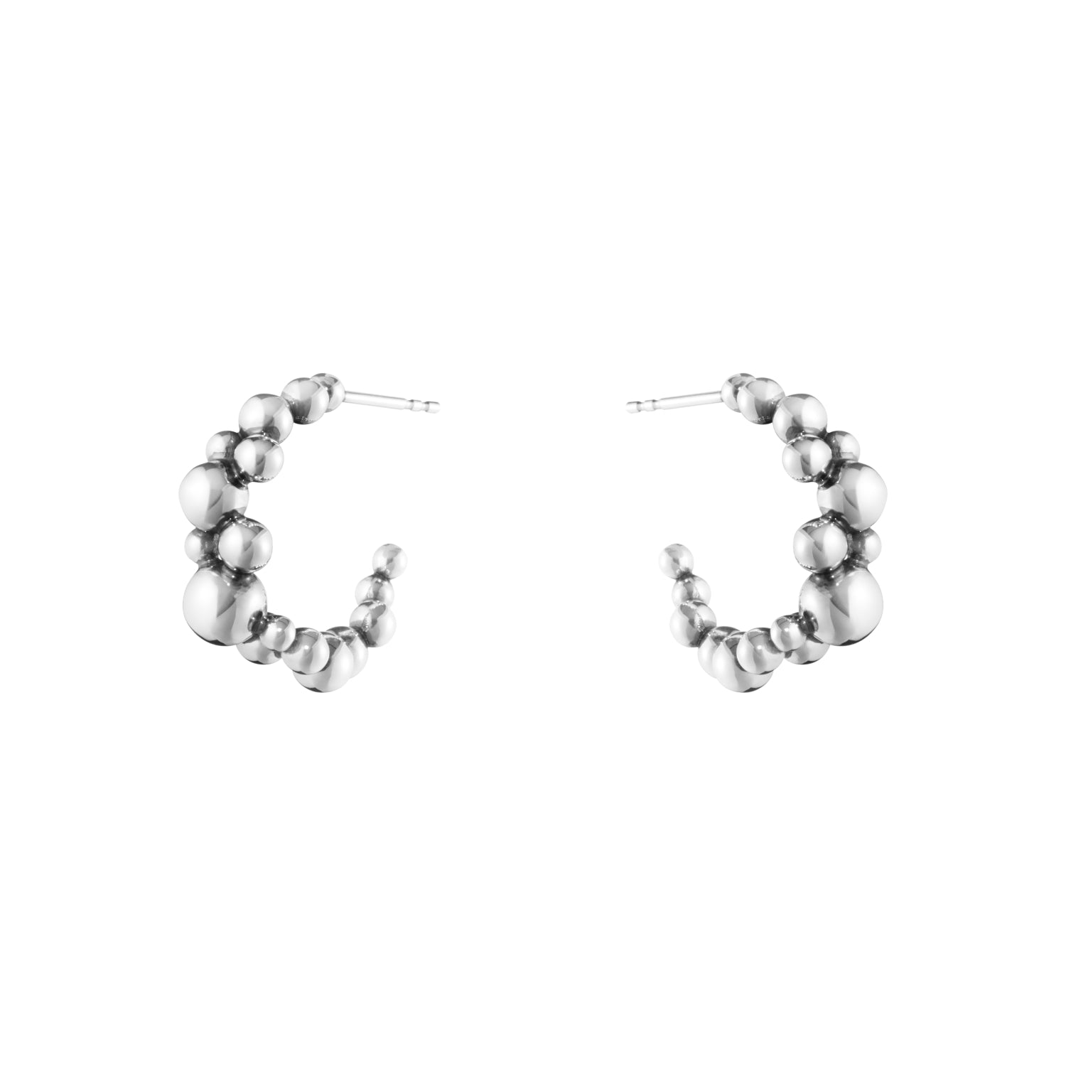 These simple yet stylish hoops can be worn to dress up an everyday outfit or elevate an elegant ensemble. Their looping form is made up of a chain of sterling silver beads inspired by the grape-shaped motifs that ornamented Georg Jensen’s holloware designs from the early 1900s.