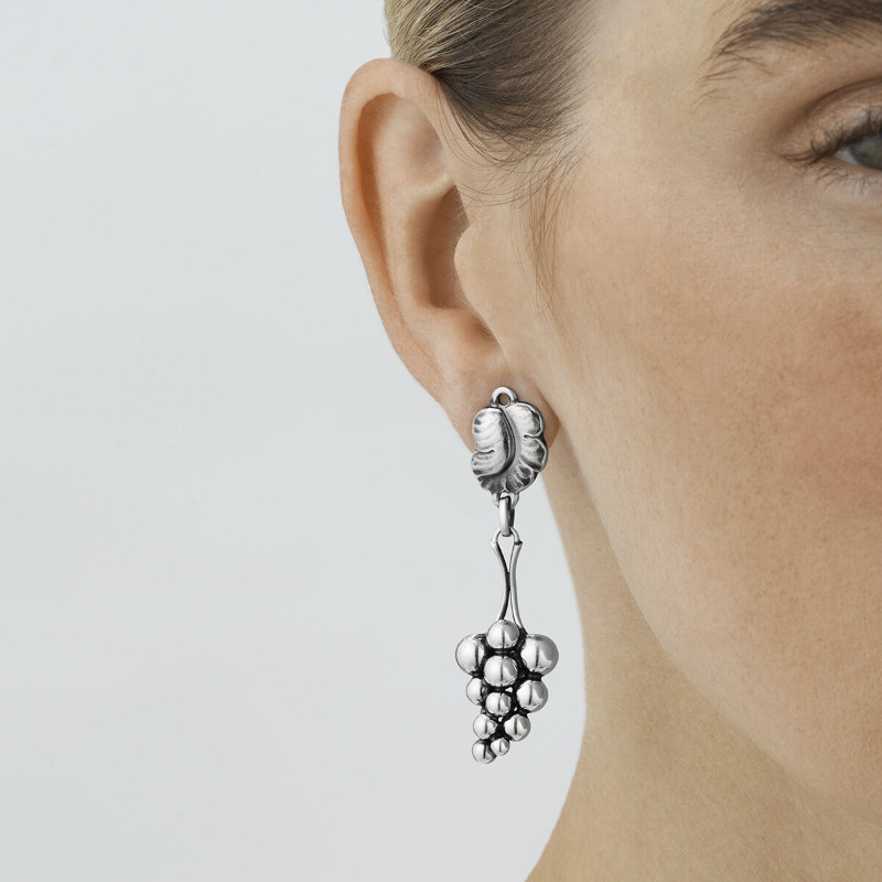 Taking, as inspiration, an Art Nouveau grape motif originally used by Georg Jensen himself to decorate early silverware, these classic clip-on sterling silver earrings conjure up all the glamour and sophistication of New York in the Roaring Twenties.