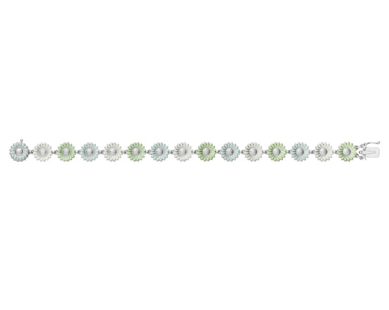 • Georg Jensen Stine Goya Daisy Sterling Silver Green and White Enamel Bracelet - 20001114 (GGN-1469/SM)