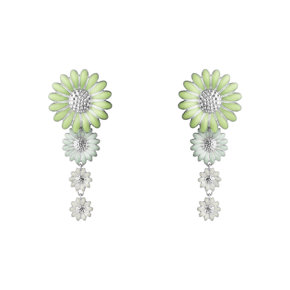 • Georg Jensen Stine Goya Daisy Sterling Silver Green and White Enamel Drop Earrings - 20001123 (GGN-1457)