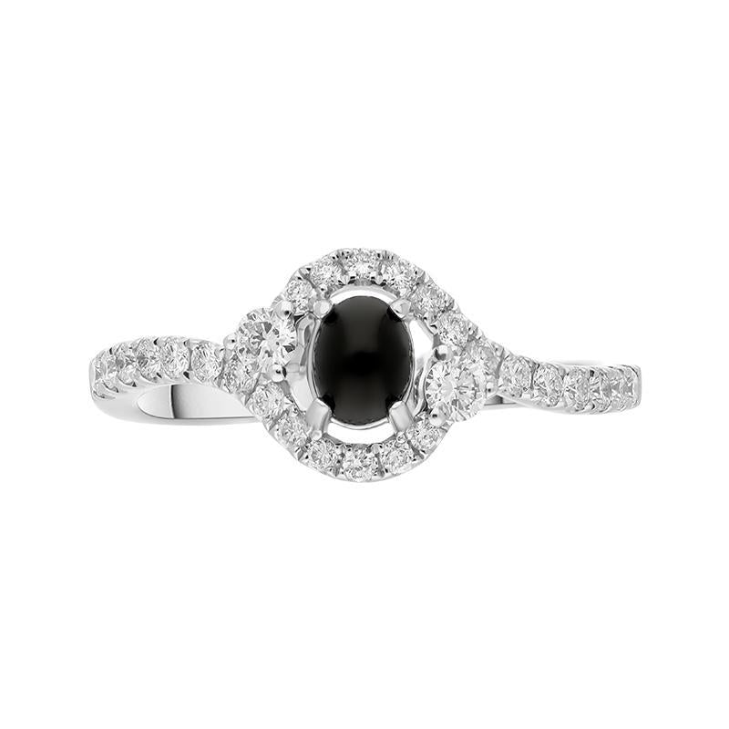 18ct White Gold Whitby Jet 0.37ct Diamond Oval Wrap Ring, R1019.
