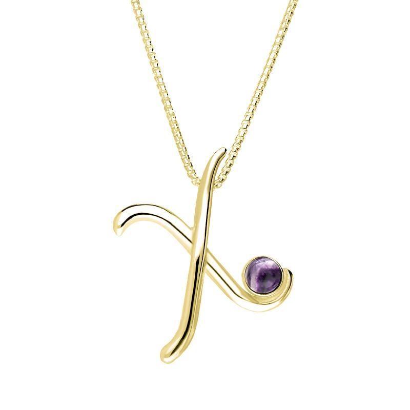 18ct Yellow Gold Blue John Love Letters Initial X Necklace, P3471.