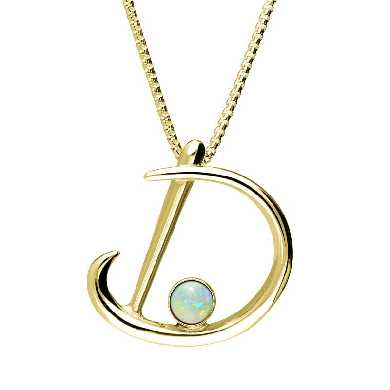 18ct Yellow Gold Opal Love Letters Initial D Necklace, P3451.