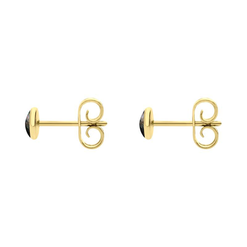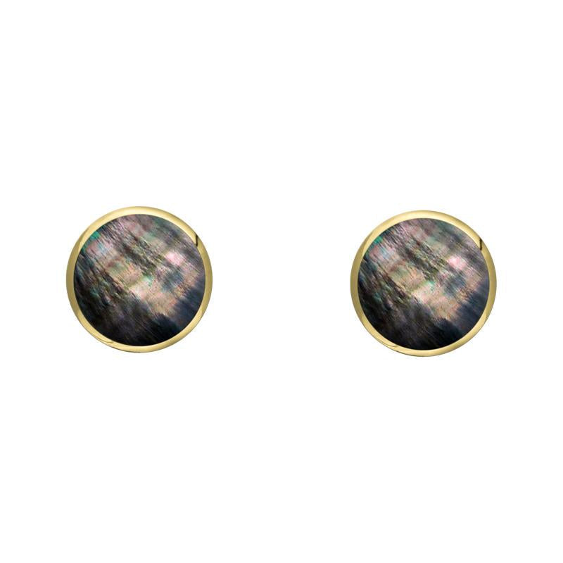 9ct Yellow Gold Dark Mother of Pearl 4mm Classic Small Round Stud Earrings, E001.